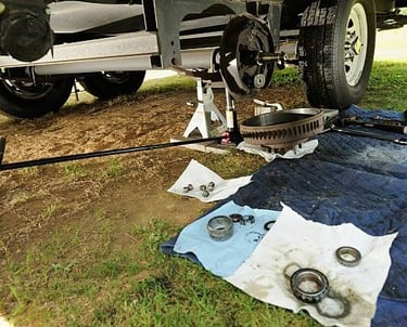 Comprehensive wheel bearing checks and general caravan servicing.